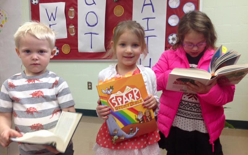 It is an important part of DIT that children have their own Bibles to read on their own. When children first begin DIT at age 3 or 4, they are given their own Story Bible. As a part of First Communion or around 2nd grade, they receive a children’s study Bible.