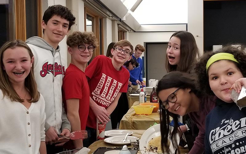 While both junior high and high school youth have their own groups, they also come together on Sunday mornings during the faith formation hour for Bible study and discussions. They also work together in service projects, both within the congregation like hosting a Shrove Tuesday Pancake Supper and Backpacks of Hope, and outside the congregation serving at activities like Habitat for Humanity’s Rock the Block and Services trips.